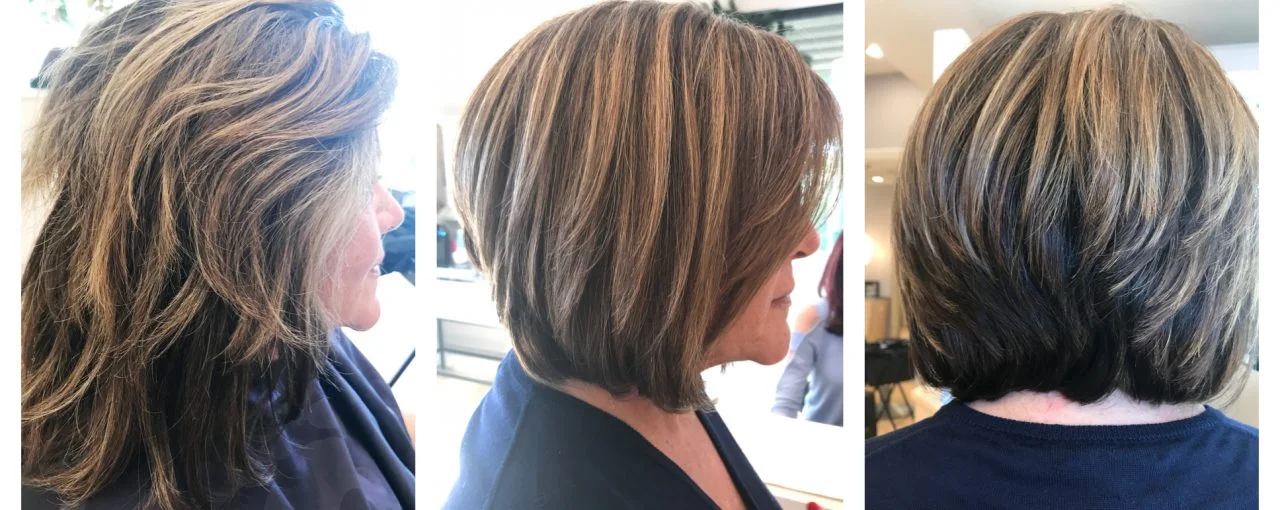 Before and After Bobs Brooke BrookeAtSalonMulberry Haircuts Highlights Ladies Haircut Ladies Root Touchup Root Touchup / All Over Highlights / Ladies Cut / Style January 10, 2018 by Salon Mulberry comments (0)